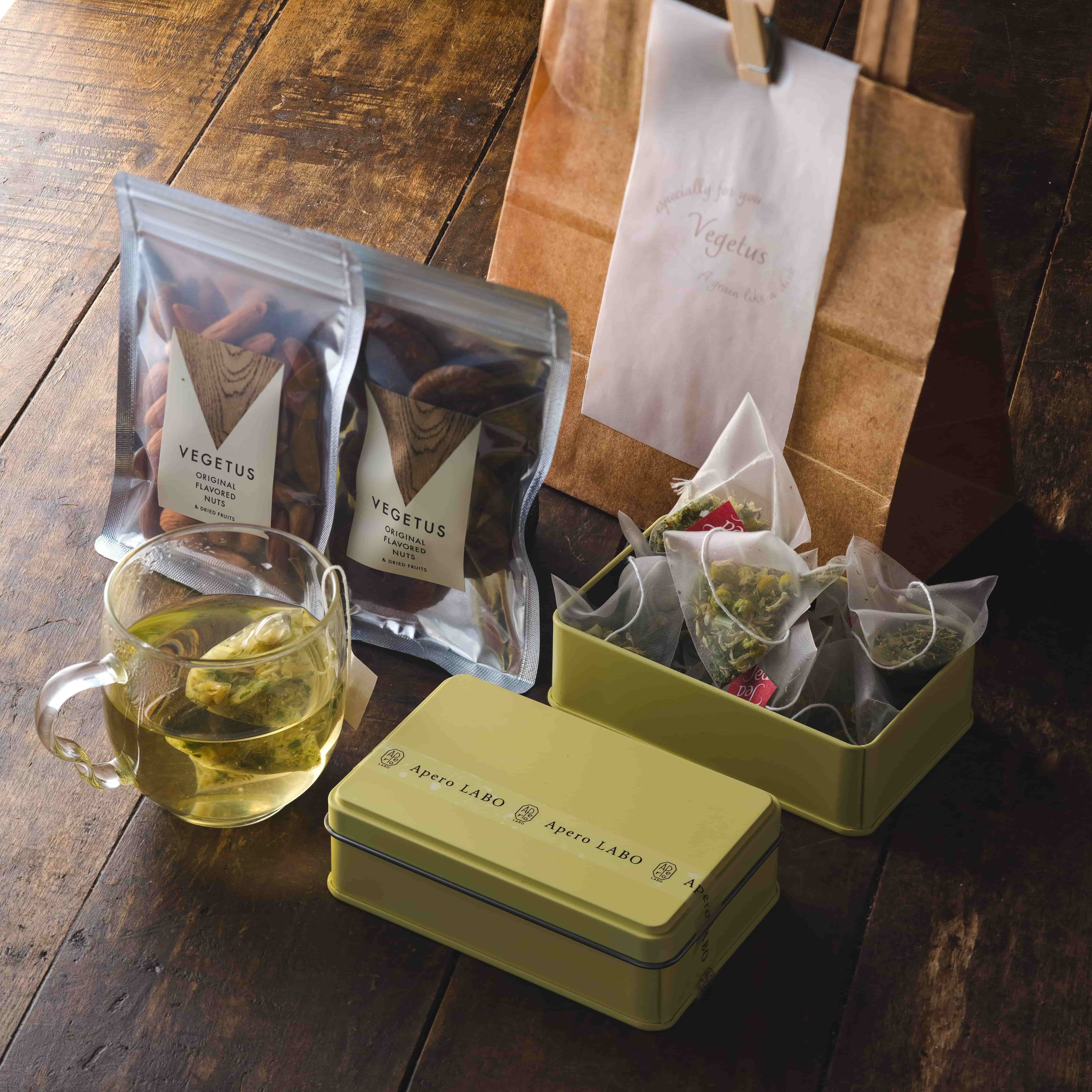 市場にほとんど流通しない那須高原harb’sのカモミールティーを中心に、アフガン産のアーモンドといちじくを組み合わせた贅沢なセット。センスの良い大人の手土産に最適です。